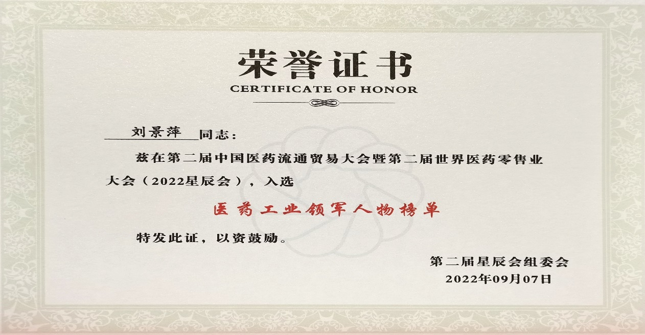 本次星辰会期间,BB视讯斩获颇丰,获得多项行业奖项及荣誉。在开幕式上,刘景萍董事长荣获“医药工业领军人物”称号。